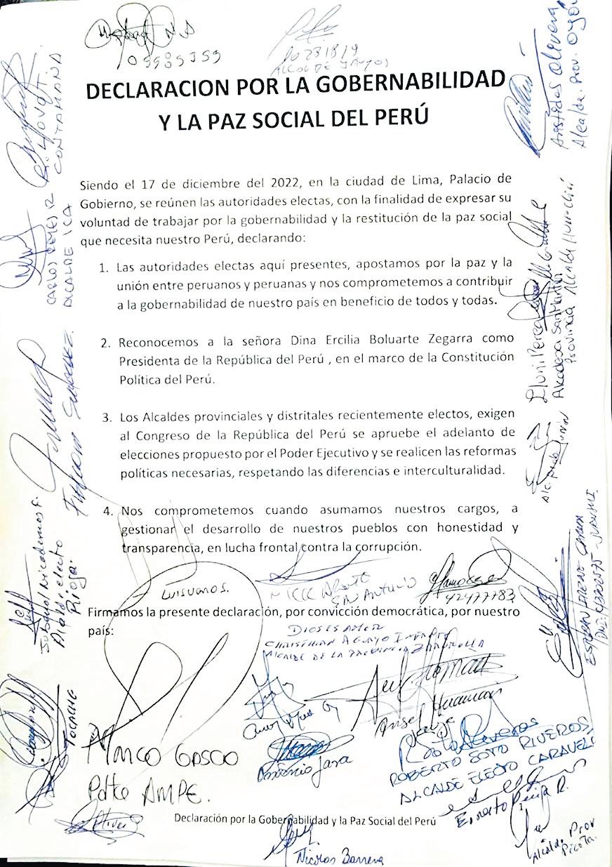 En otro momento, la jefa de Estado indicó que está en elmáximocargodelpaíscumpliendo el orden constitucional al integrar la misma fórmula presidencial con el expresidente Pedro Castillo, quienalservacadoporelCongresotuvoquedejarelcargo.