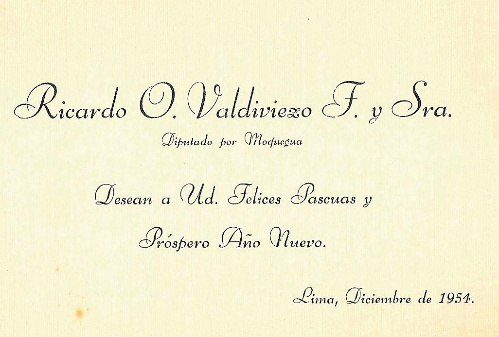 También se conserva una tarjeta de saludo de Ricardo Valdiviezo, diputado por Moquegua, en 1954, y de representantes políticos de otras regiones.