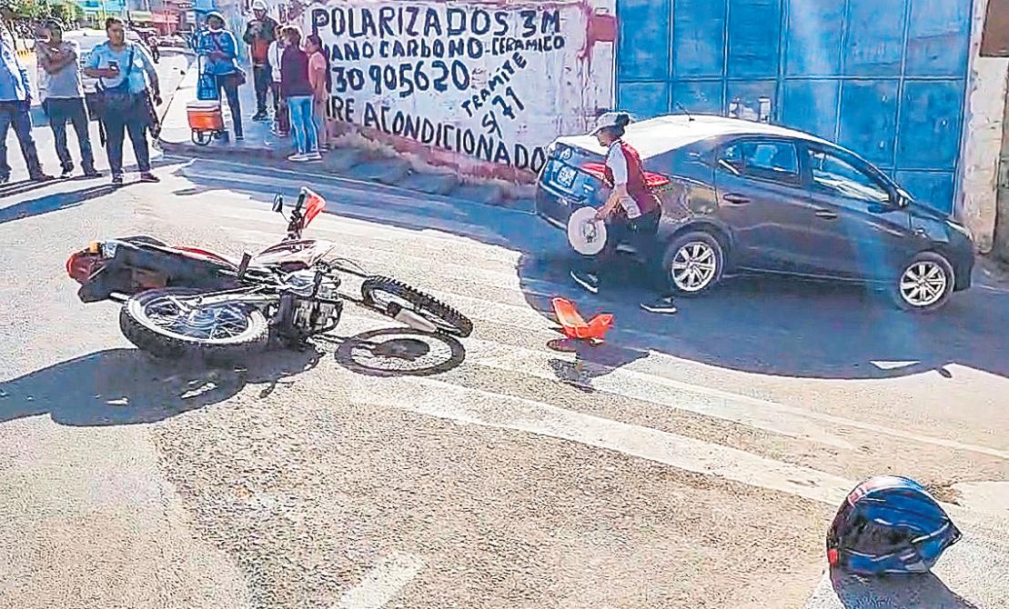 Ambos conductores resultaron ilesos, mientras que la motocicleta que chocó la parteposteriordelauto,sufrióserios daños en el neumático y desprendimiento de protectores, mientras que el otro vehículopresentaabolladura.