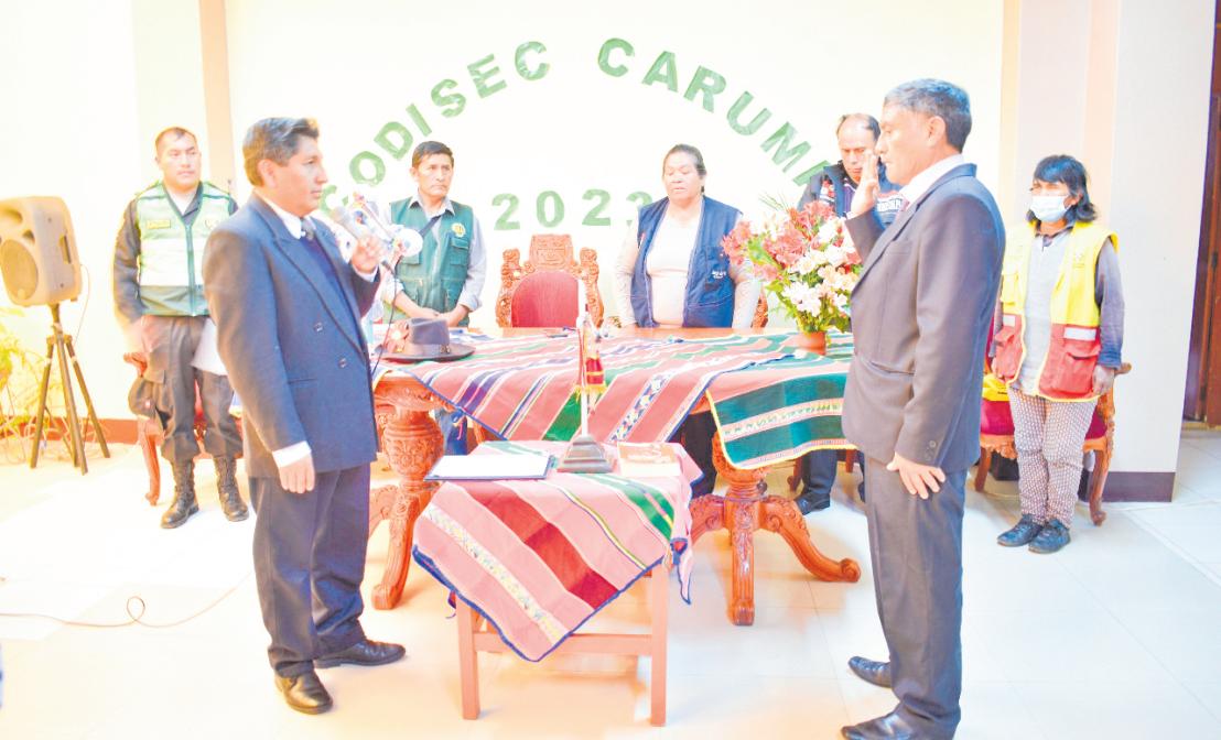 La Juez de Paz de la Primera Nominación, Gloria FranciscaFloresAlvarado,fuelaencargada de tomar juramento alMg.EdgarEscobarNina,comopresidentedelComitéDistritaldeSeguridadCiudadana (CODISEC), posteriormente el burgomaestre tomó juramentoalosdemásmiembros