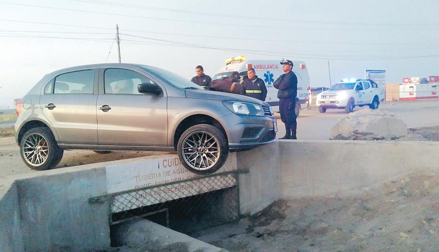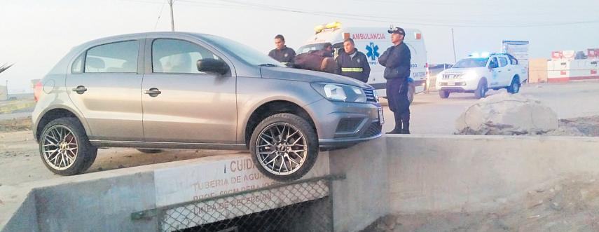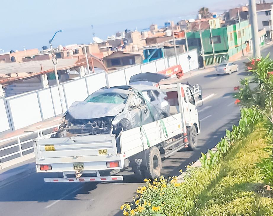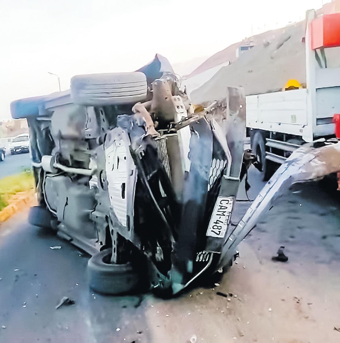 Pudo ser fatal. La mañana de ayer viernes a las 06:30 horas un vehículo volcó en la vía Panamericana parte superior de Alto Ilo altura de la I.E. Jorge Basadre a 200 metros del intercambiovial.
