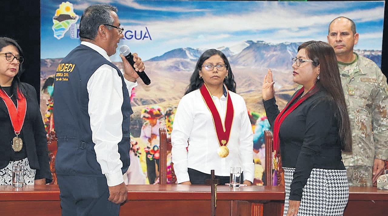 Fue el jefe de la Dirección Desconcentrada del INDECI Moquegua, coronel (r) Eduardo Quelopana Bohórquez, quien prestó juramento a la gobernadora Gilia Gutiérrez,