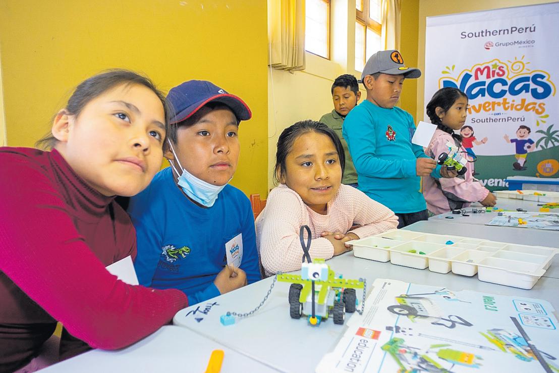 Los talleres, que cubrieron todas las vacantes, comenzaron a dictarse de manera simultánea en los colegios José Carlos Mariátegui de Torata y VidalHerreraDíazdeYacango donde, gracias al comprometido apoyo de la comunidad educativa, se dictan clases de lecturacreativayrobótica.