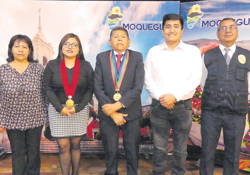 Larry Coayla heredó el cargo de presidente de los alcaldes de la MacroSuryestuvoescoltadoporotrosalcaldescomolosdeLloque Rubén Mamani,Ichuña Jesús Ventura y Samegua Antonio Eyzaguirre.