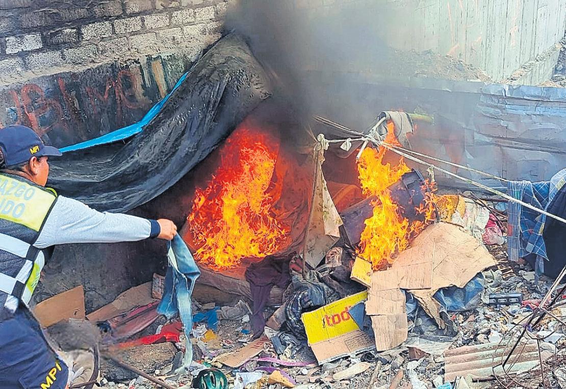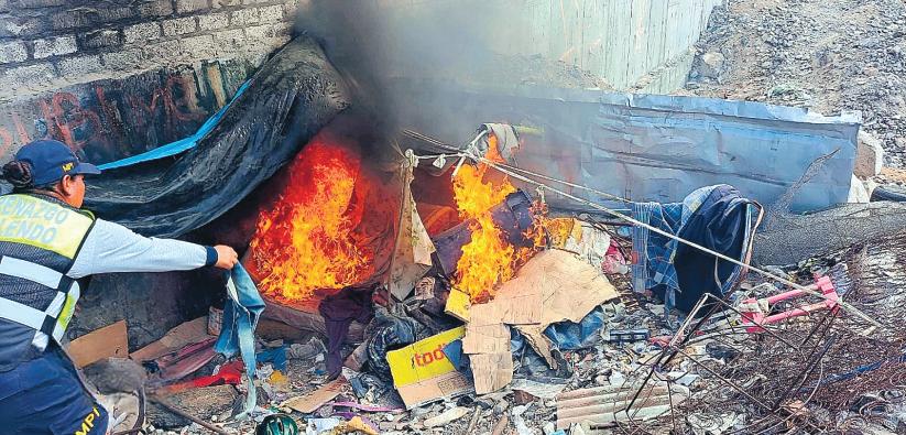 dos municipales, en el botadero de la quebrada del Cementerio, pampas del Chen Chen Sur, del distrito de Moquegua.