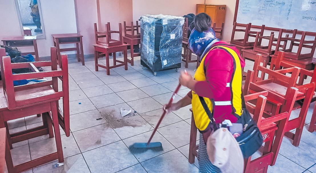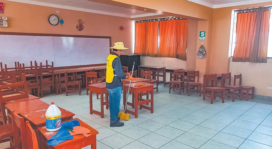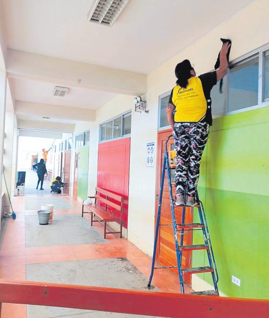 INPE:Sentenciadosenlibertad realizanlimpiezaen institucioneseducativas