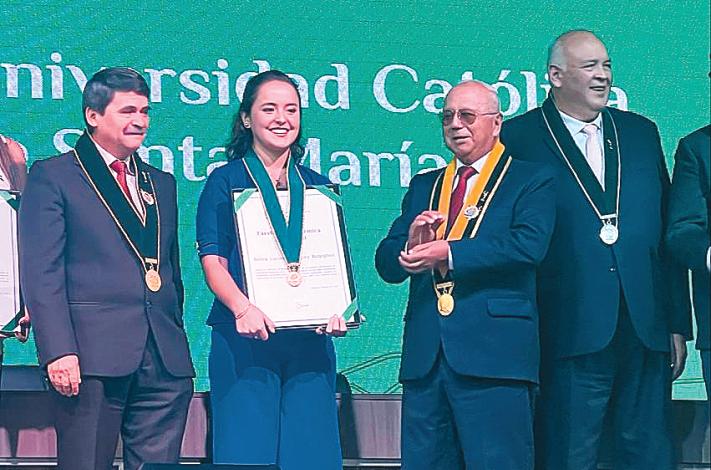 Este 16 de marzo en la prestigiosa Universidad Católica Santa MaríadeArequipa,serealizólaCeremoniadePremioAnualala ExcelenciaAcadémica2022.Allísereconocealestudianteconel más alto rendimiento académico (promedio ponderado),es decir al mejor de los mejores de todas las carreras universitarias.Y quien recibió ese premio fue la joven moqueguana Bianca Luciana Rodríguez Rospigliosi,quien egresó y se tituló en la carreradeIngenieríaIndustrial.