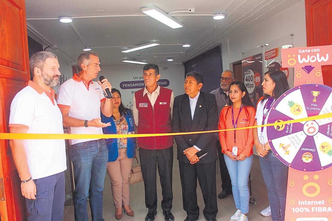 Contandoconlapresenciadel alcalde provincial John Larry Coayla,se llevó a cabo la inauguración y apertura de la oficina principal de la empresa deinternetWOW.