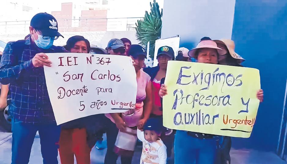 Padres de familia de la I.E. Inicial Nro. 367 “San Carlos” del distrito de San Antonio realizaron un plantón frente a la Unidad de Gestión Educativa Local (UGEL) Mariscal Nieto exigiendo de manera urgente unadocenteyunaauxiliarparalosniñosde5años.