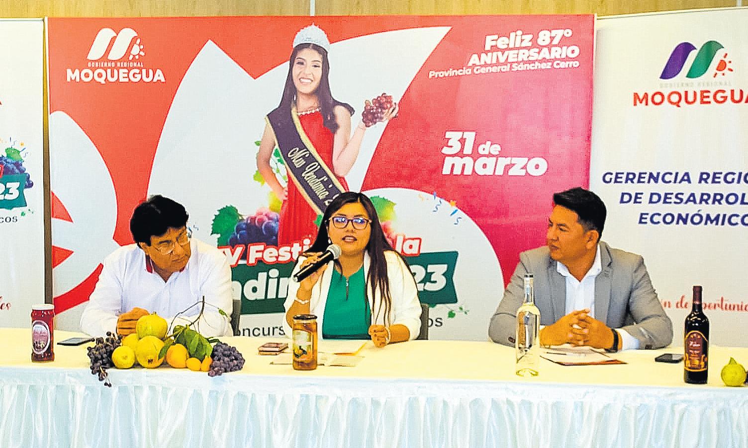 La gobernadora Gilia Gutiérrez Ayala, señaló que este festival que impulsa el Gore Moquegua, busca fomentar el turismo y contribuir con el movimiento económico de la provinciaGeneralSánchezCerro,a través de un trabajo articulado con la asociación de productores vitivinícolas de OmateyQuinistaquillas.