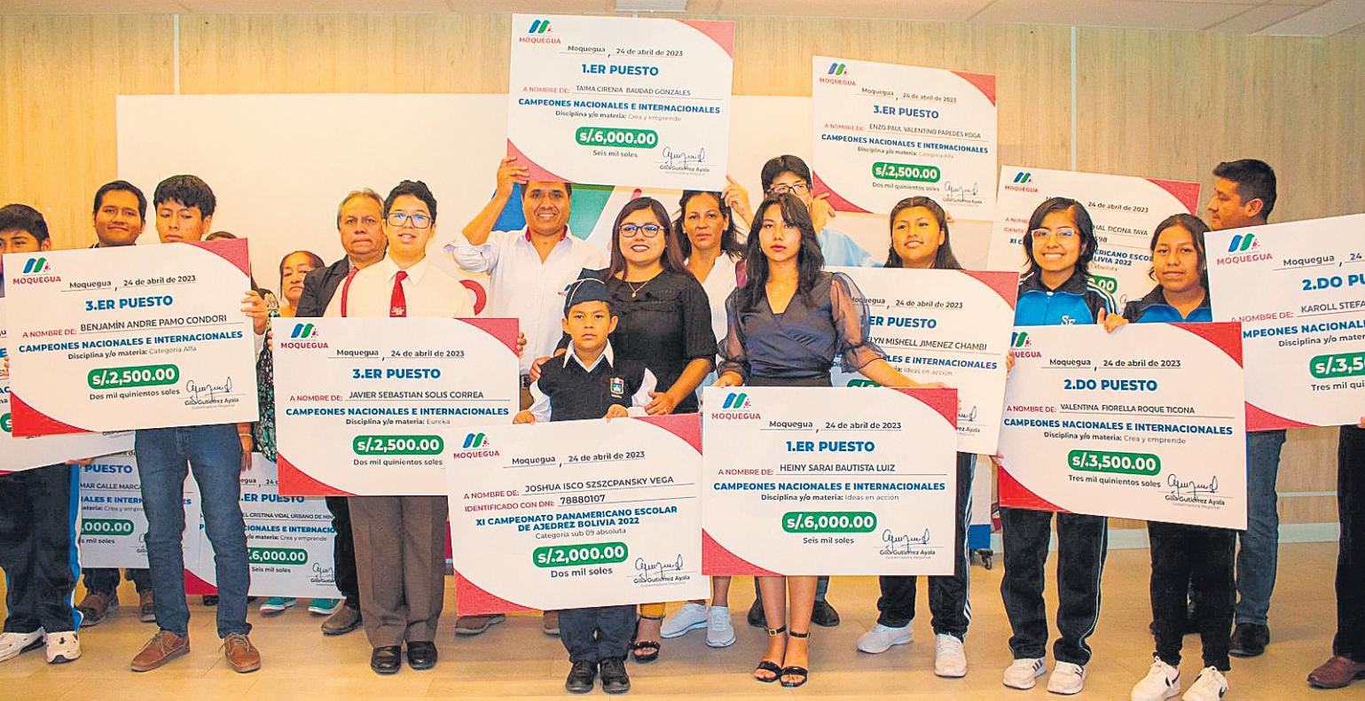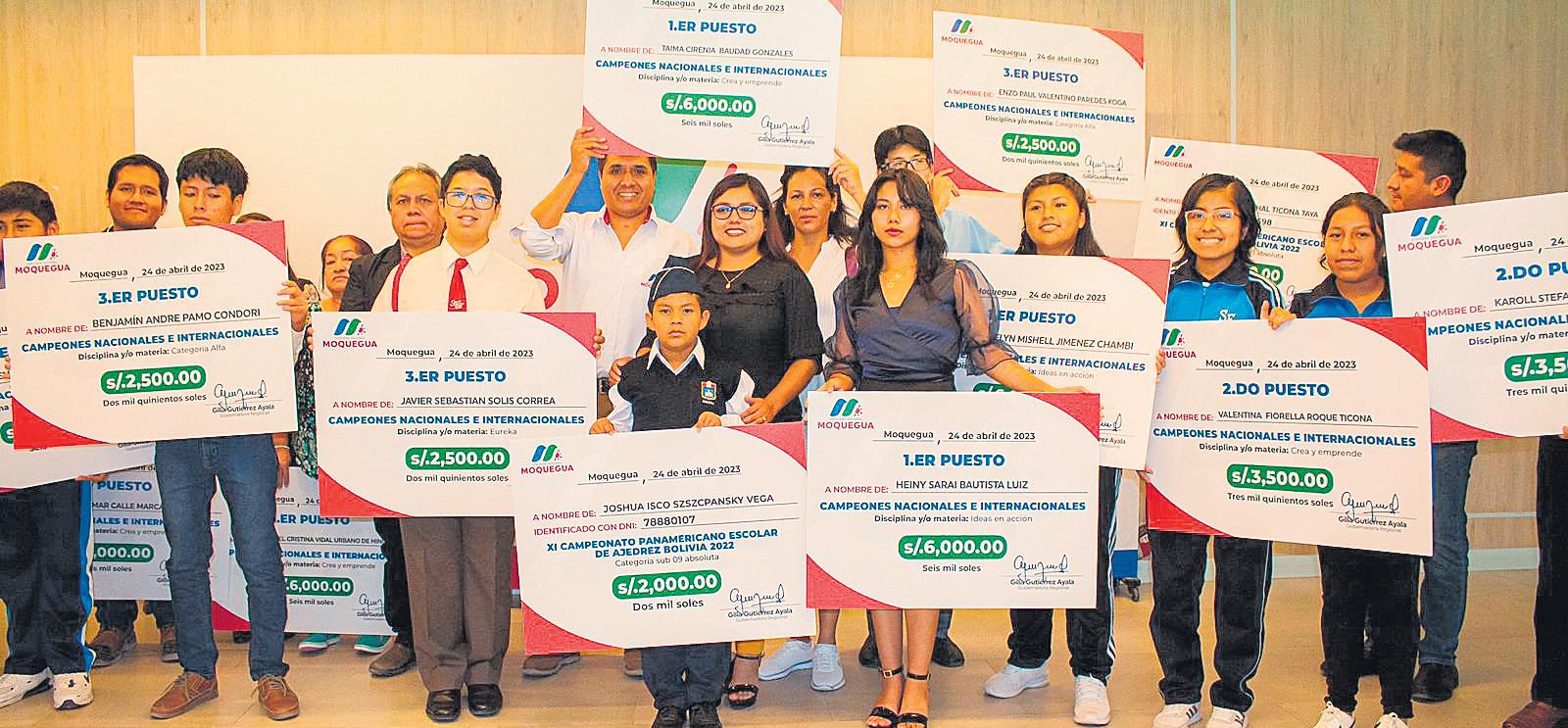 A través de la Resolución Ejecutiva Regional N° 2152023-GR/MOQ,seotorgósubvención económica a 35 campeones nacionales e internacionales que lograron premios en disciplinas deportivas y rendimiento académico, cuyomontoalprimerpuestoasciende a S/ 6, 000.00, segundo lugar S/ 3,500.00 y tercer lugardeS/2,500.00.