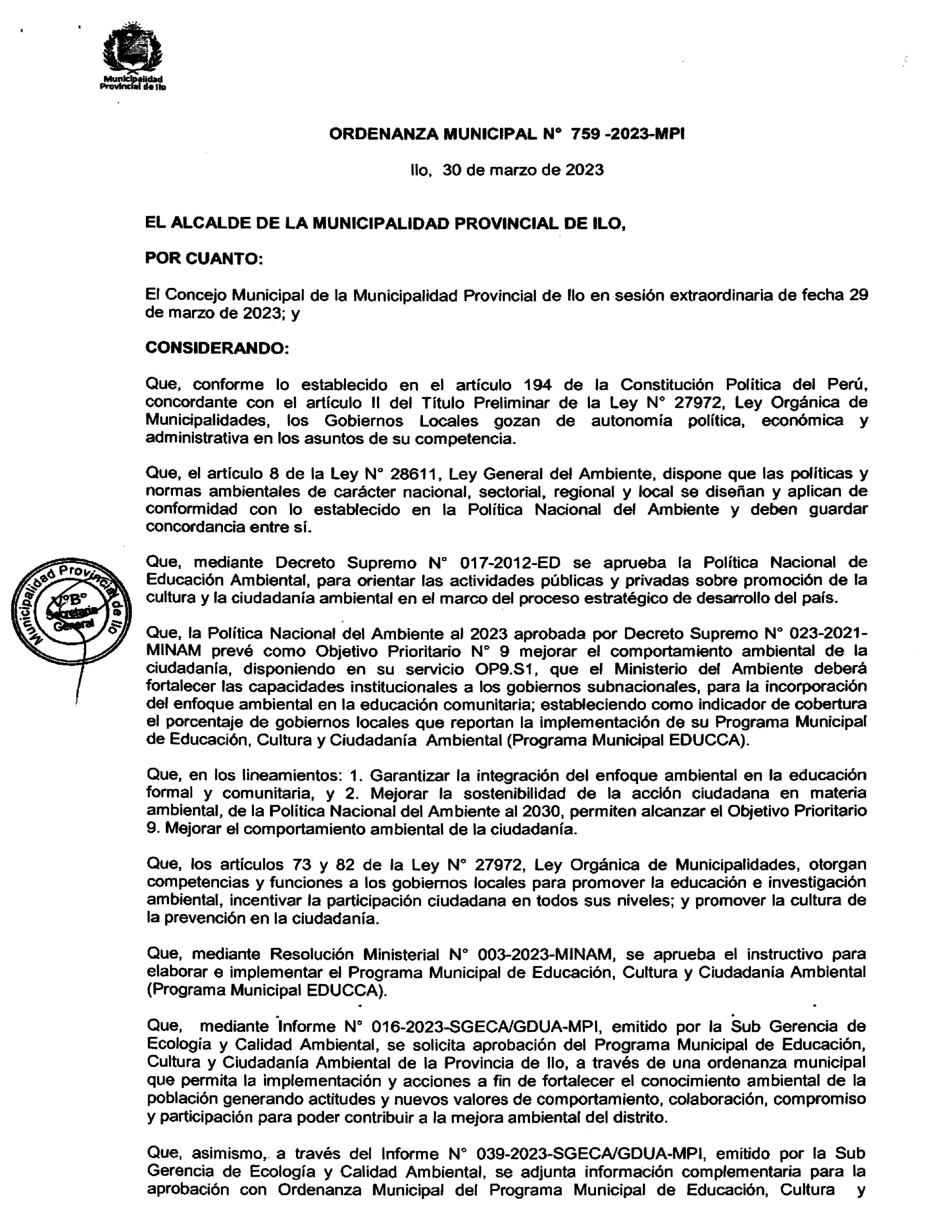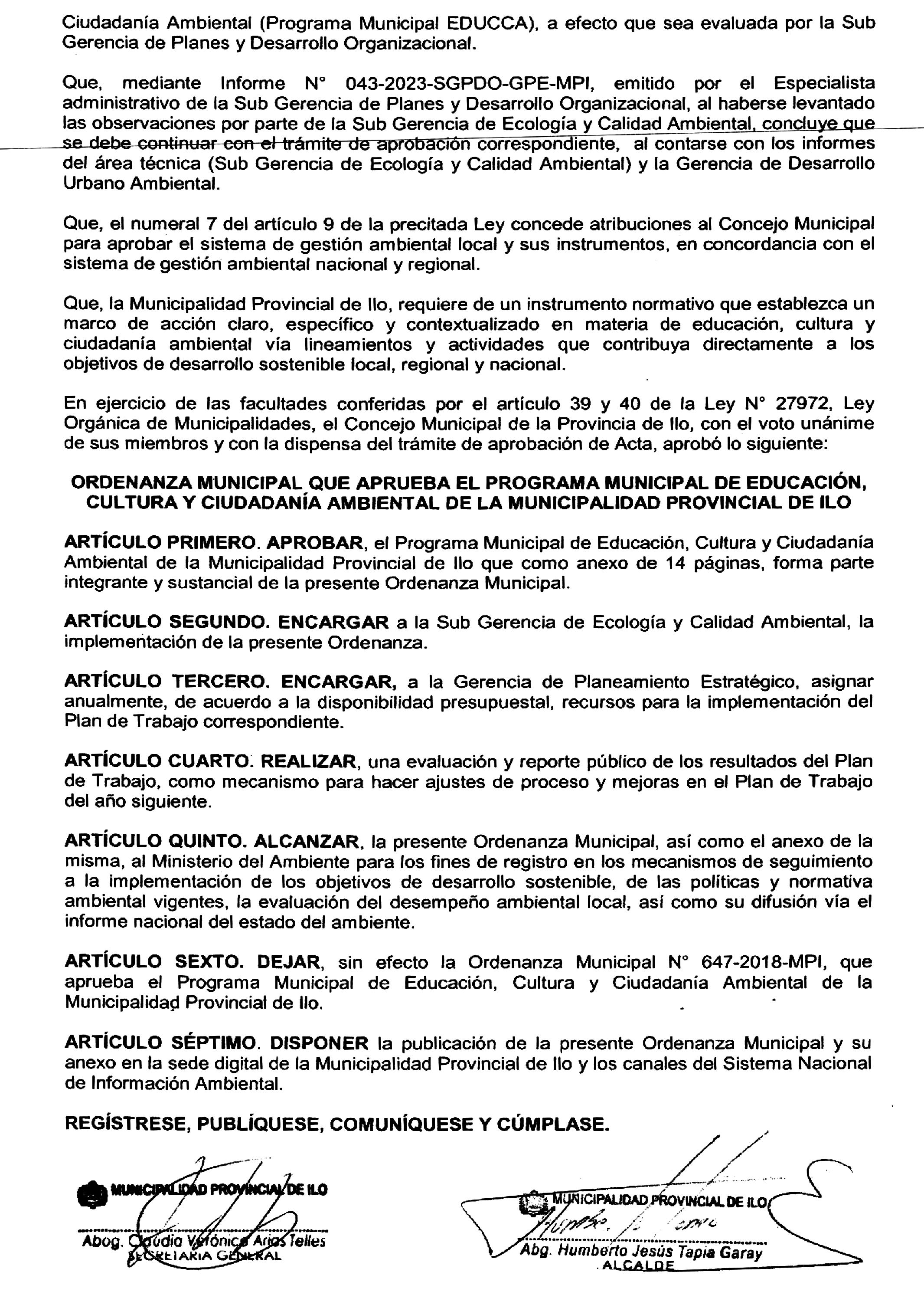 Con Resolución Ejecutiva Regional Nro. 247-2023GR/MOQ,de fecha 27 de abril del 2023,fue designado el Ing. JavierRomeroLunacomonuevogerentegeneraldelProyecto Especial Regional Pasto Grande(PERPG).