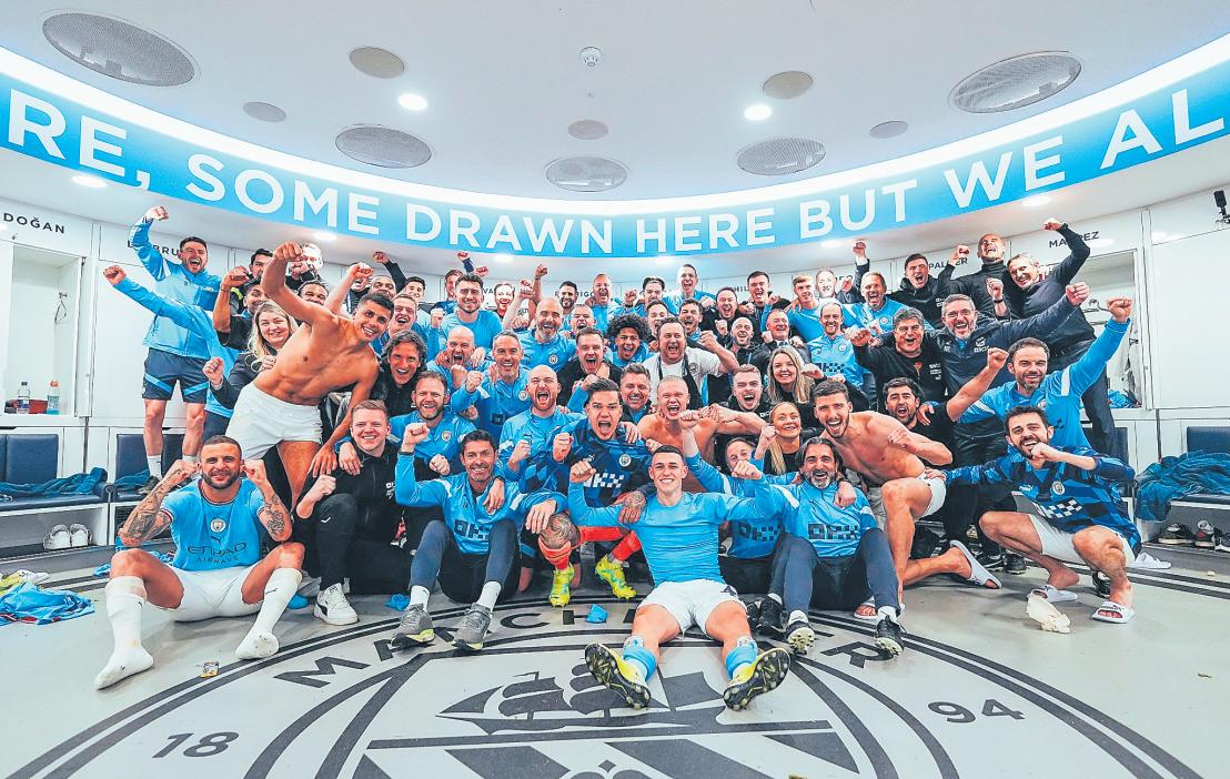|BernardoSilva,lafiguradelpartido.(FOTO:EFE)| |Los'ciudadanos'enelvestuariotraslavictoria.(Foto:ManchesterCity)|