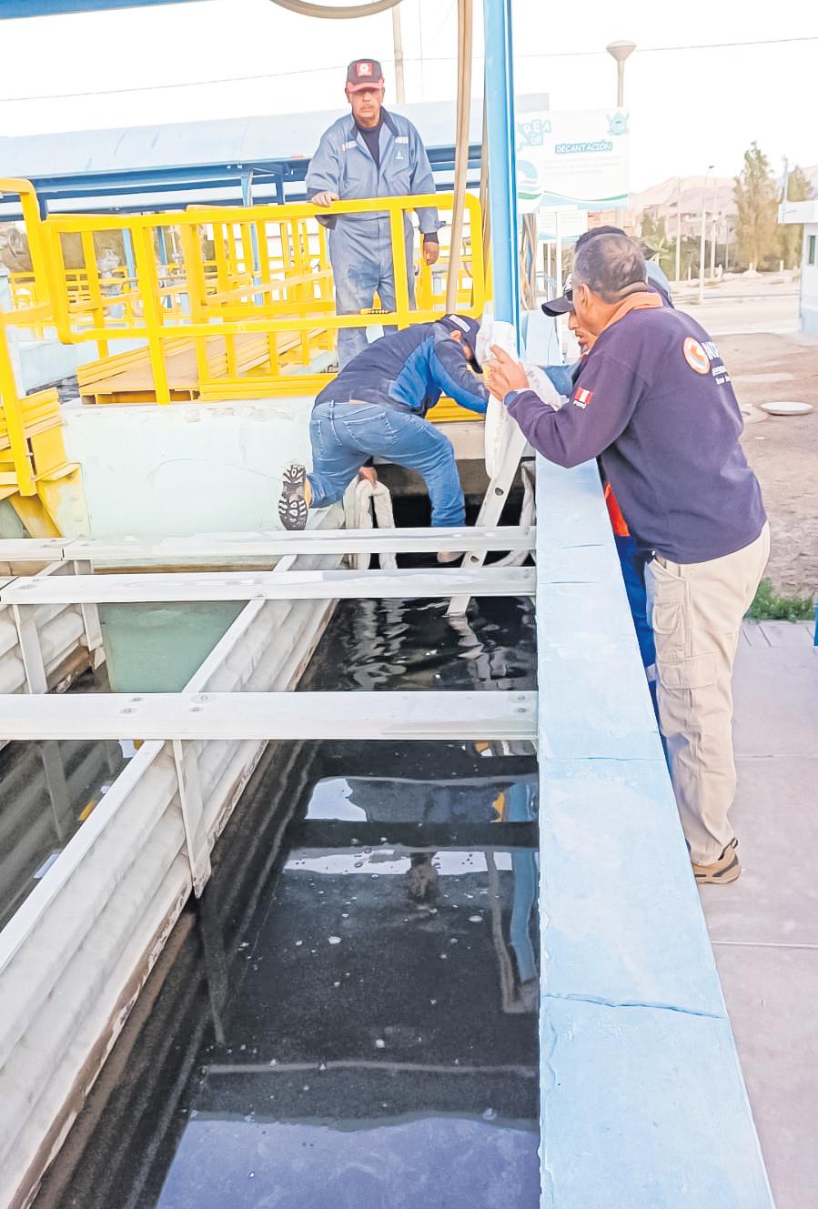 Trabajadores de la Entidad Prestadora de Servicios (EPS) Moquegua al visualizar restos de combustible, cerraron la compuerta principal de ingre-