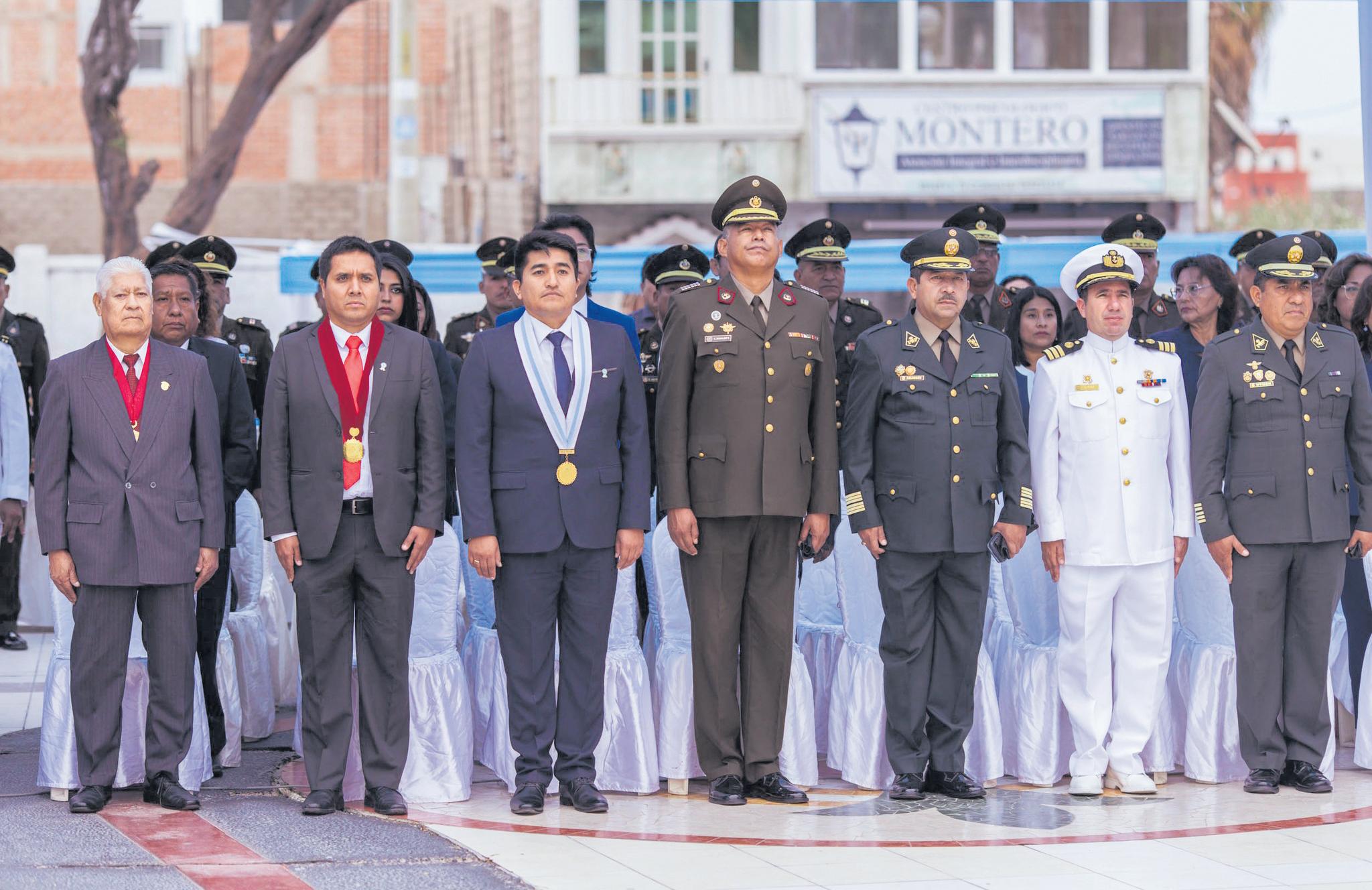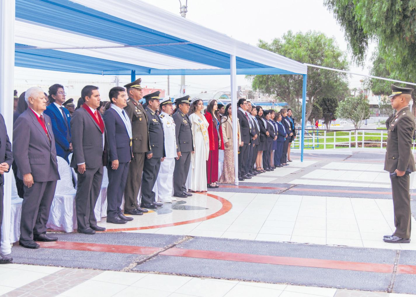 Autoridades políticas y militares, diversas delegaciones deinstitucionespúblicasyprivadas participaron del acto cívico.