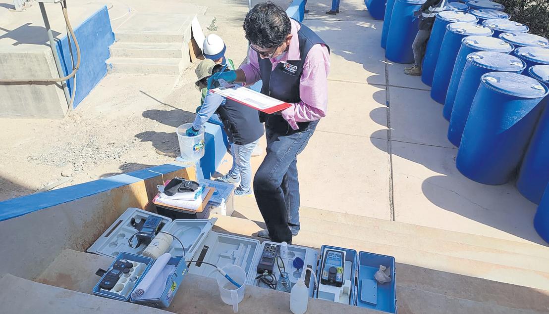 ►Quellavecoapoya limpiezadeplantay SouthernPeru dispusocisternas paraentregaraguaa lapoblación.