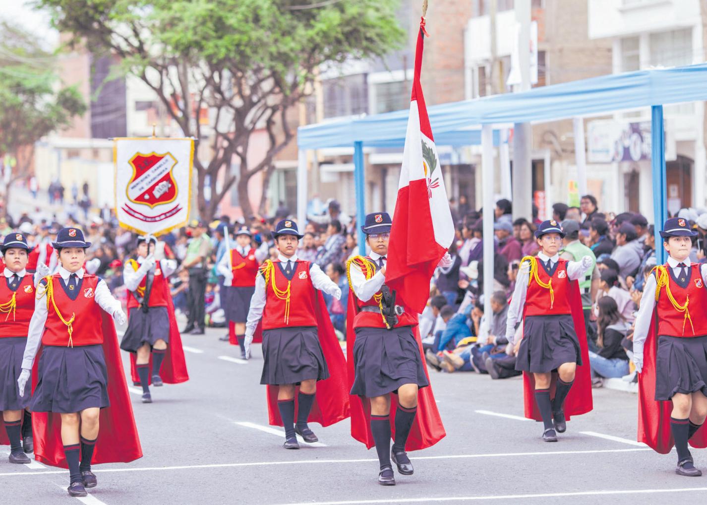 Los resultados del concurso del desfile escolarson:enelnivelprimarioelprimer lugar lo ocupó la I.E. Jean Piaget y en secundaria el ganador fue el colegio Mercedes CabellodeCarbonera.
