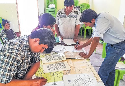 En una mesa de trabajo se tratósobreelproyectodetitulación con Leonel Jesús Galdós Medina y el abogado José María Moscoso y otros asistentes esbozando las alternativasdesoluciónparalograrel fin esperado que es el saneamiento de los predios agrícolas.