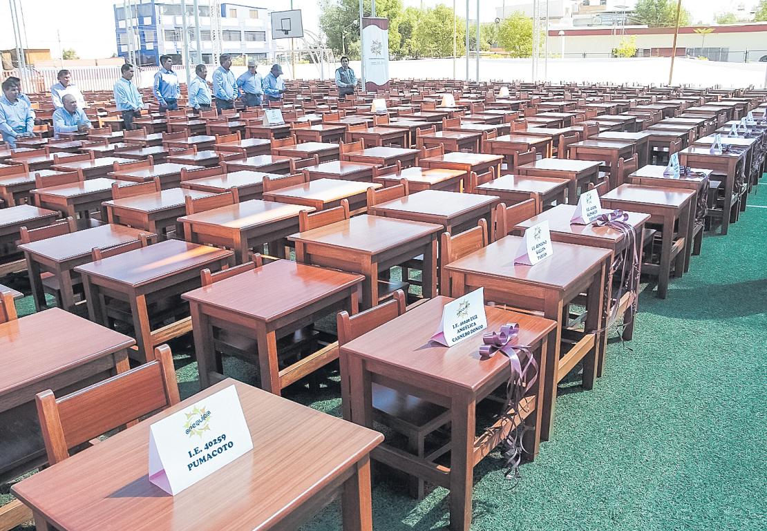 El Gobierno Regional de Arequipa (GRA) hizo entrega de 1403 carpetas y sillas unipersonales para colegios de las provincias de Islay, Caylloma, Camaná y Arequipa beneficiando a escolares que mejorarán las condiciones en las que reciben su dictado de clases.