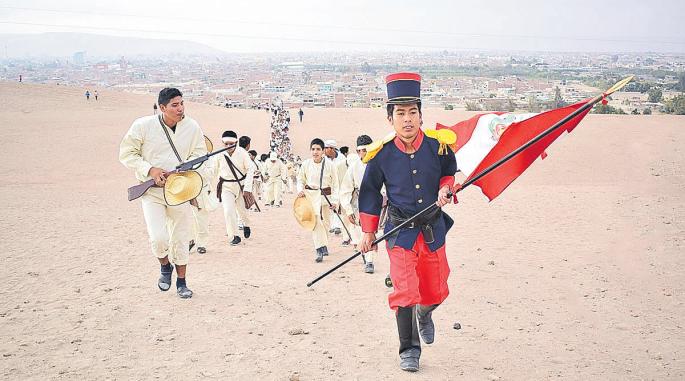 JóvenesestudiantesymaestroshanescenificadolahistóricaBatalladelCampodelAltodelaAlianzaenelcerroIntiorkoenTacna,recordando un episodio de la infausta Guerra del Pacífico.El hecho fue emocionante para los espectadores y amantes de la soberaníanacionalendefensadelapatria.