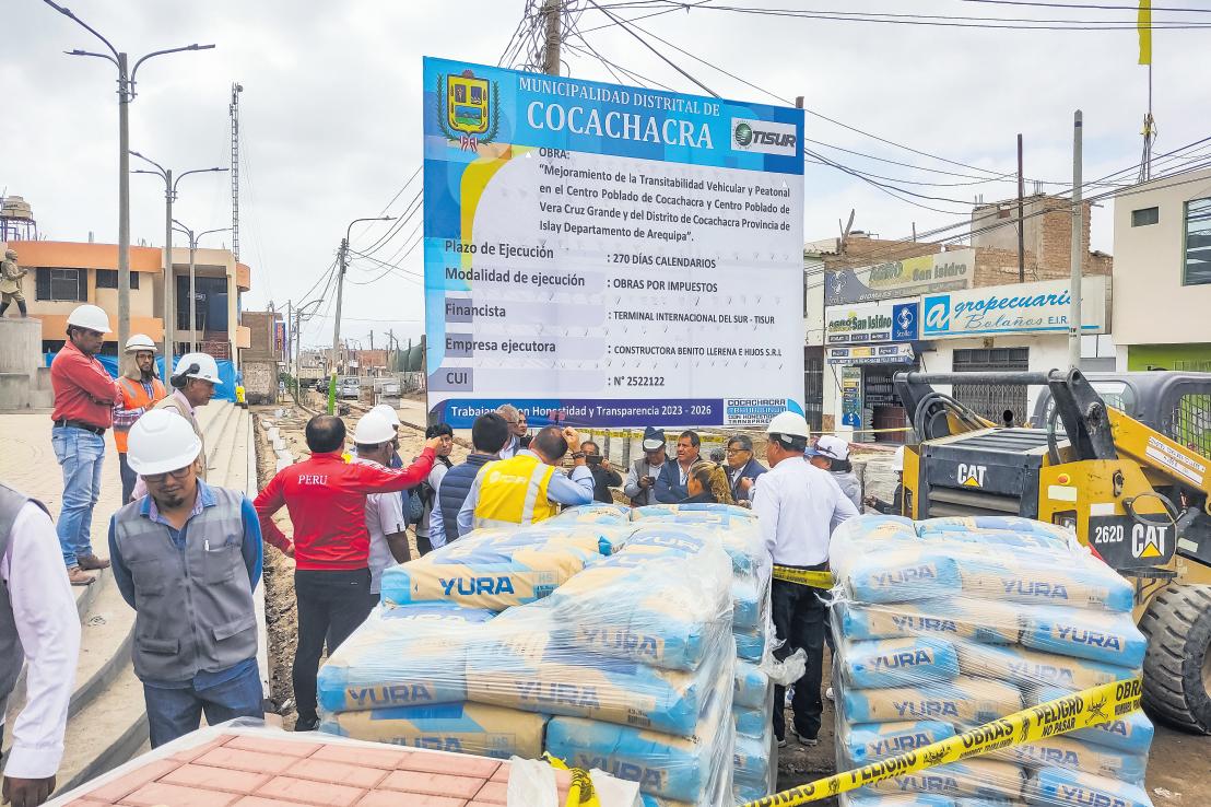 El gerente general de Tisur, Mauricio Núñez del Prado y funcionarios de dicha empresa portuaria, realizaron este jueves una inspección en el avance de obras en el distrito de Cocachacra junto al alcalde de esa localidad Abel Suarez, en el proyecto vial que se ejecuta bajo la modalidad de obrasporimpuestos.