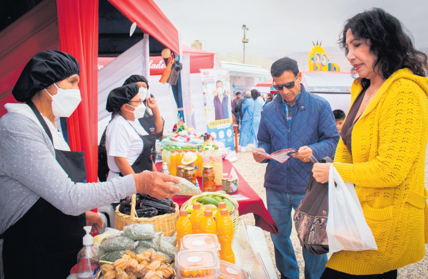 Participaron las socias de la Cooperativa Industrial Frutifresh, proyecto promovido porSouthernPerú,quienesdeleitaron con sus frescos néctaresdefruta.Asímismo,acudieron productores del anexo SanJuanSanJunecontumbo,
