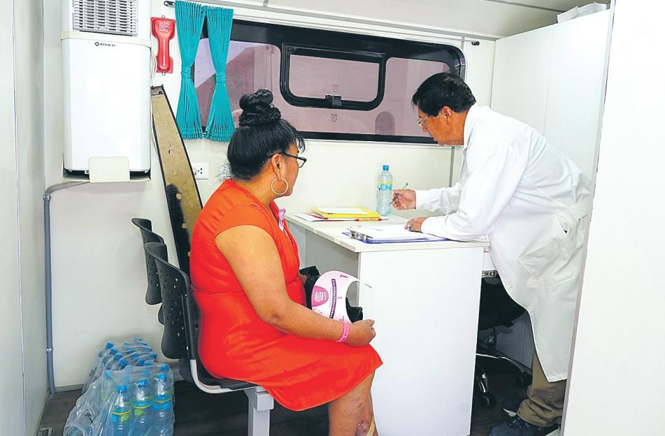 total de 120 mujeres recibieron atención especializada. El domingo el “bus de despistaje” continuó en el centro poblado Chen Chen, luego recalaráeneldistritode Samegua, los anexos de Tumilaca y Tala y culminará en el distrito de Torata. Posteriormente segui-