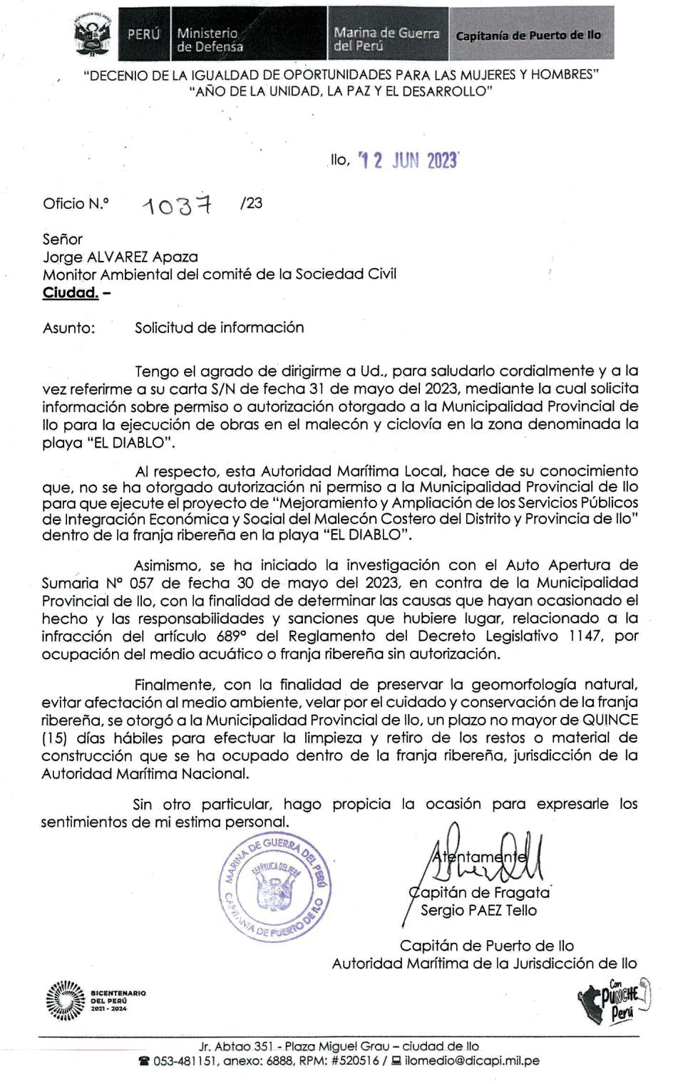 ►GerentedeServiciosyMedioAmbientede Mollendo,dijoqueestetrabajosehacecoordinado conelSenasadesdeprincipiosdelaño2023.