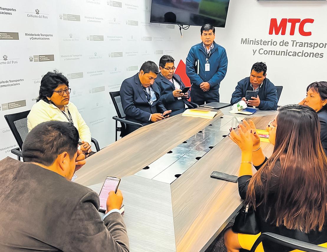 ►LagobernadoraregionaldeMoquegua,Gilia GutiérrezAyala,juntoalosalcaldesysociedad civildelaprovinciaGeneralSánchezCerro, sostuvoreuniónconlaministradeTransportesy Comunicaciones,PaolaLazarte.