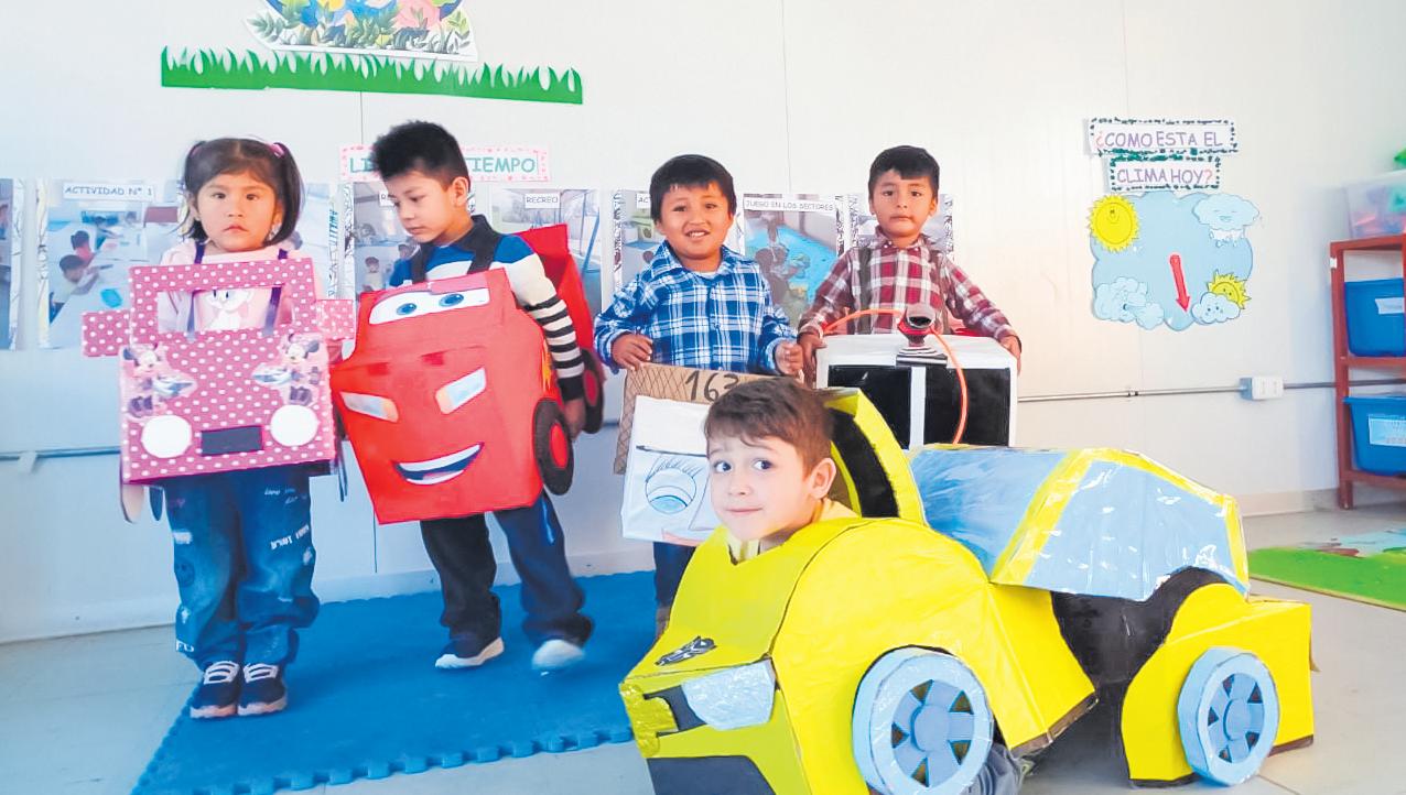 Aprovechando cartonesendesuso,los niñosdelaIE163Alto deLaVilla,usuariosdel ProgramaNacionalde AlimentaciónEscolar QaliWarmadiseñaron ingeniososautospara festejarelDíadelPadre.