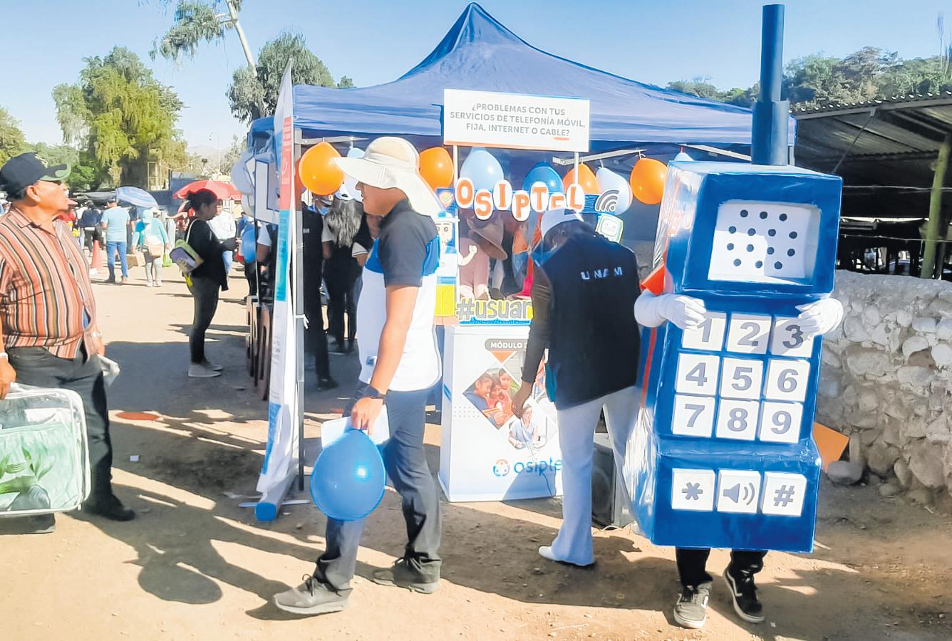 Para la actividad informativa,encabezada por el jefe de laoficinaregionaldelOSIPTEL en Moquegua, Percy Barrios Llosa, el ente regulador instaló dos módulos itinerantes en lazonadeingresoalaferiapara absolver las dudas de los asistentes sobre los servicios