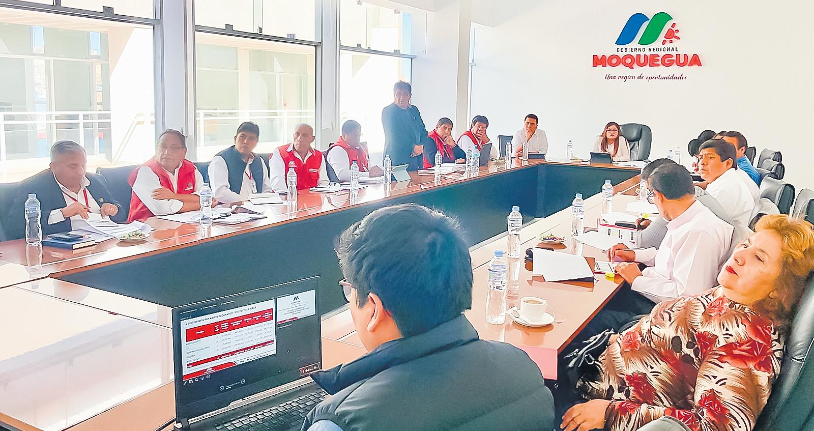 La gobernadora regional Gilia Gutiérrez Ayala y consejeros regionales sostuvieron una reunióndetrabajoconlafinalidad de conocer los alcances sobre la facilidad financiera (adelanto de canon minero) de 100 millones de soles que ofreceel Gobierno Centralpara la ejecución de proyectos de inversión en la región por parte del Gobierno Regional deMoquegua.