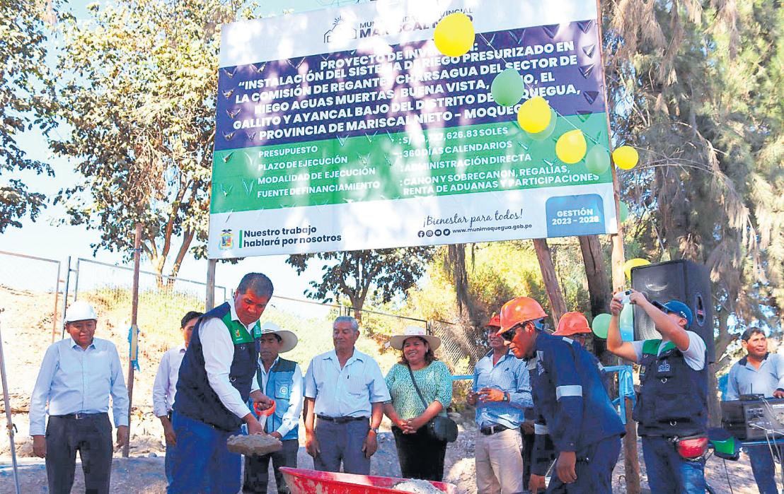 obra con inversión superior a 23 millones de soles, que se ejecutará en 360 días, implican: construcción de sistema deriego,captacióndeagua,infraestructura de almacenamiento, además de sistema de filtrado e infraestructura de riego parcelario y obras complementarias.