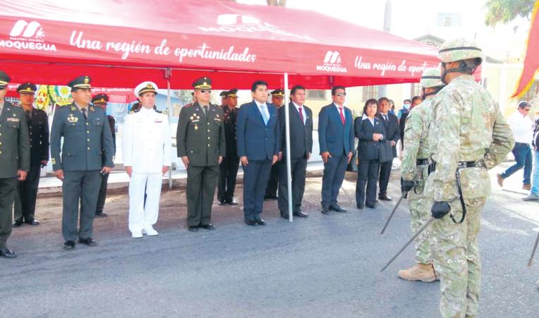 Laceremoniafuepresidida por el alcalde provincial Abog. HumbertoTapia Garay,acompañado del coronel EP Javier Cesinario Mondragón director del Colegio Militar Mariscal Domingo Nieto, oficial más antiguo del Arma de Comunicaciones de la Guarnición de Ilo,quien estuvo a cargodeldiscursodeorden.
