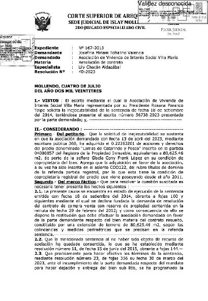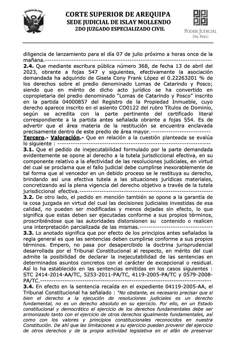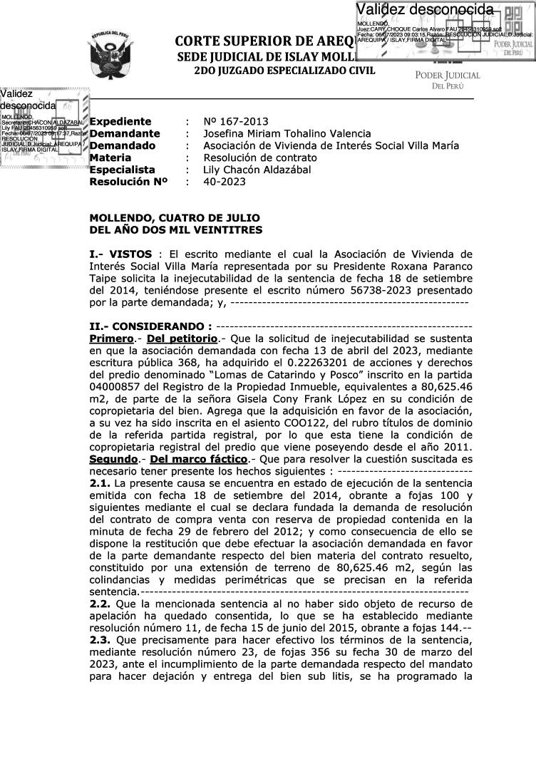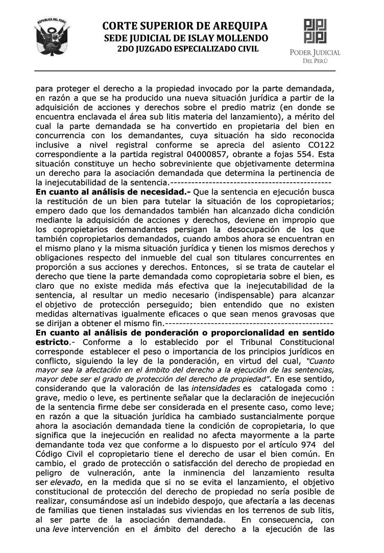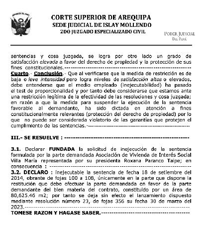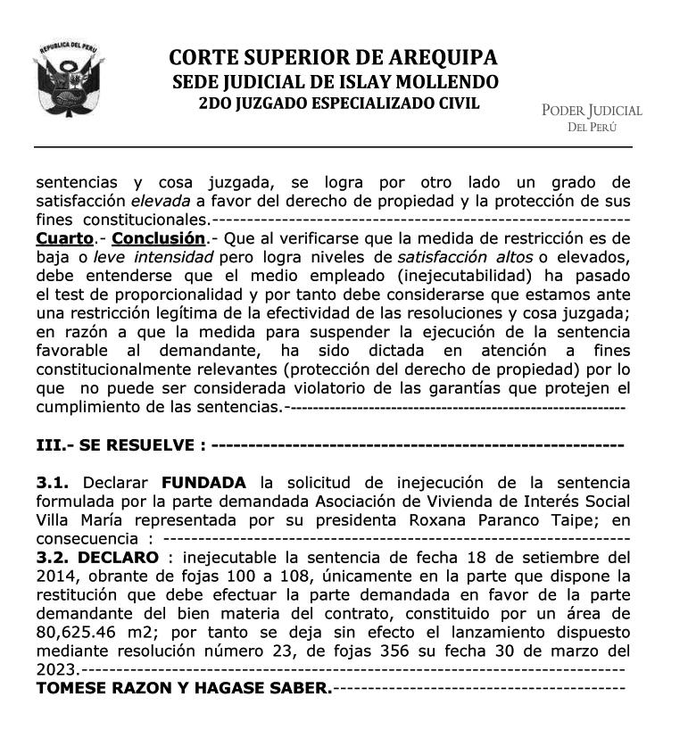 ISLAY JUEZ DISPONE INEJECUCIÓN DE SENTENCIA No habrá desalojo en AVIS “Villa María”
