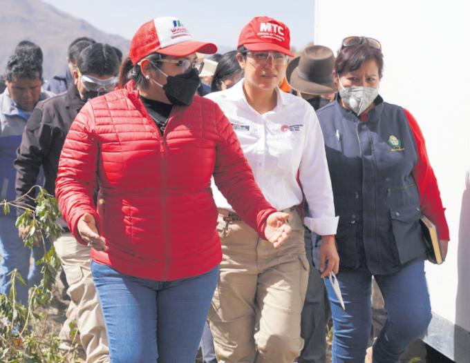 Horas después, ya en Ubinas,la ministra Lazarte observó cómo los vulcanólogos del IGP realizan la vigilancia volcánica y evalúan el alcance de las cenizas en los centros poblados de este distrito moqueguano.