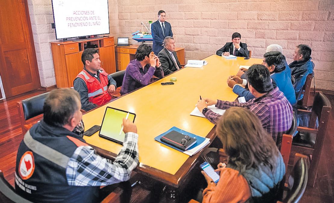 Enrecientereuniónemergencia de la plataforma de Defensa Civil Regional encabezado por la gobernadora regionalparticipóelalcaldeprovincial Humberto Tapia Garay