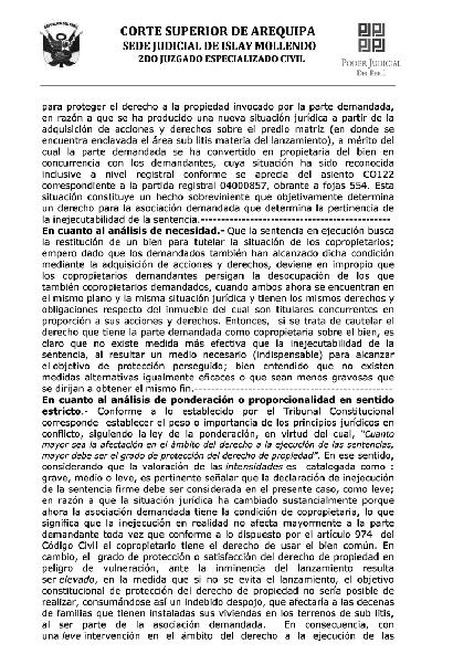 Altenerlamismacondicióndecopropietarios,tanto lapartedemandante(Tohalino)comola demandada(VillaMaría),secreaunconflictode derechosfundamentalesqueeljuezevaluóy ponderóenfavordelospobladoresde“VillaMaría”.