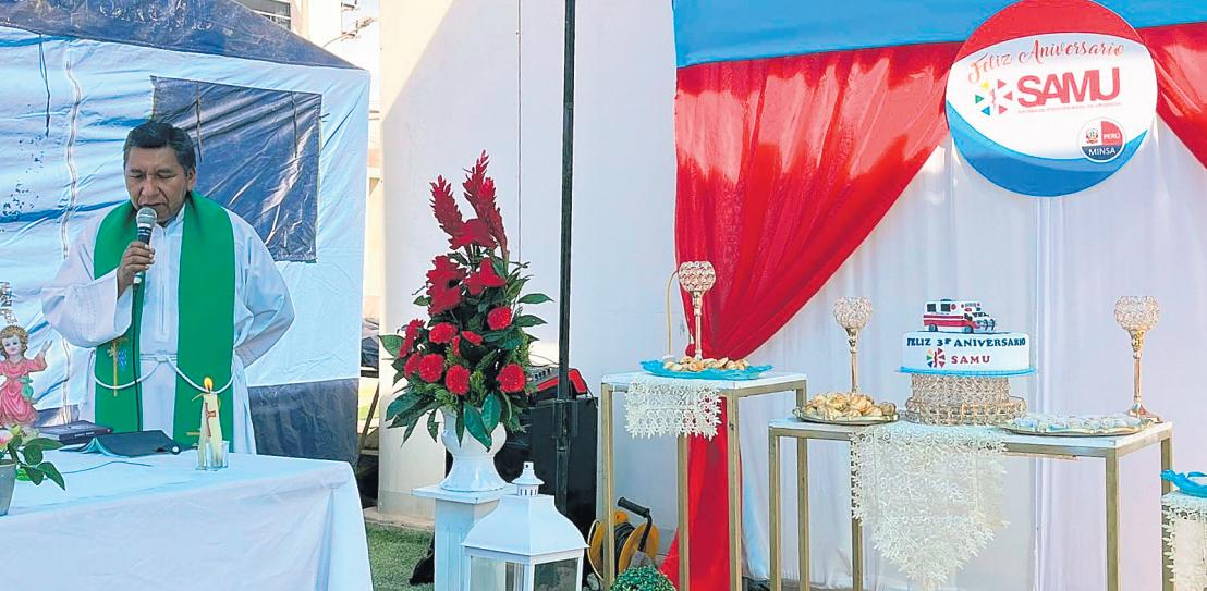 Realizan ceremonia al celebrar3añoselServiciodeAtención Móvil de Urgencia (SAMU) a favor de la comunidad moqueguana, atendiendo diversas emergencias y urgencias. El Dr. Aníbal Pacha Chávez, responsable del SAMU, indicó que el servicio nació durante la pandemia del Covid-19 y actualmente continúan asistiendo ante el