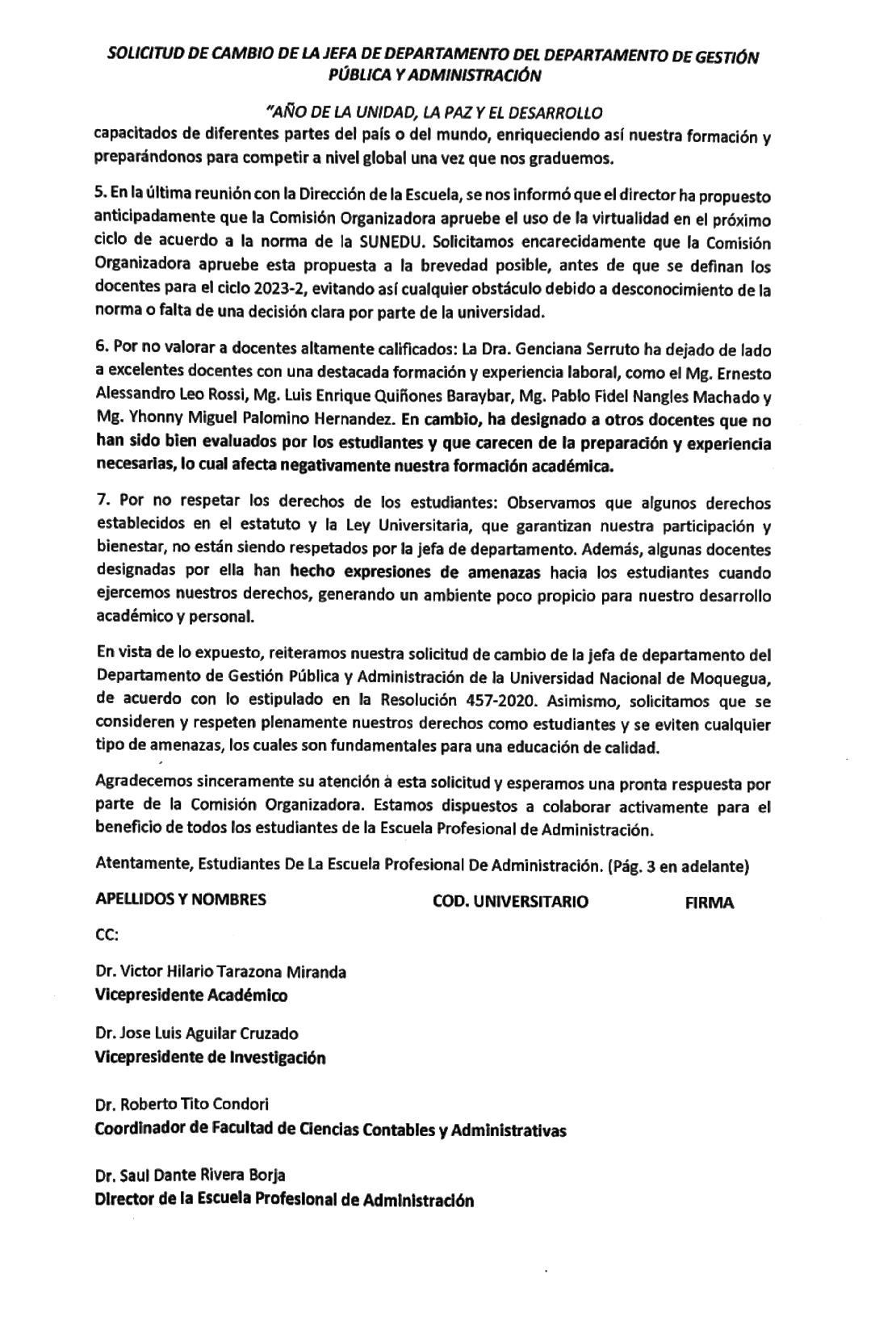 “Se ha determinado que sean3losintegrantesdeljurado calificador, quienes no serán de la ciudad de Moquegua”,aclaró.