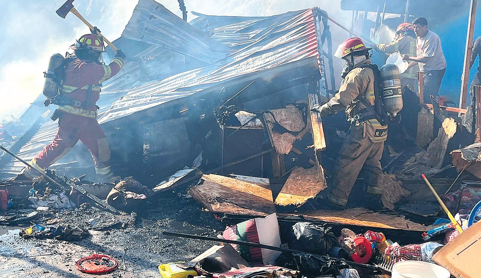 Lasviviendas, dematerial prefabricado yrústico, fuerondevastadas porelfuegoenla manzanaB,dela AsociaciónCisne Blancoeneldistrito deSanAntonio, Moquegua.