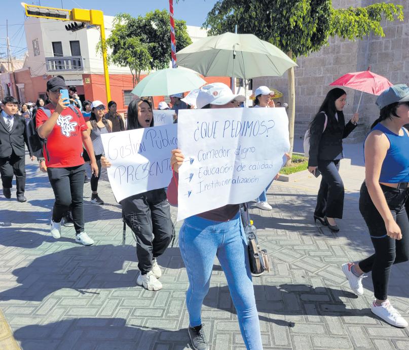Al llegar el presidente Roberto Castañeda,le exigían explicaciones,pero no lo dejaban hablar,para colmo de la protesta se coreaba la frase "hechos y no palabras". El veterano presidente al ver que le faltaban el respeto optó por retirarse, luego llegó un fiscal para pedir que no se interrumpa el funcionamiento institucionalycomoseesperaba,seprogramóunareuniónentrelos estudiantes y las autoridades para informar sobre la institucionalización. Alfinal,seimpusoeldiálogo,“cosamásgrandedela vidachico”…ENLOSTRINQUETESPOLÍTICOS,TODOSESABE.