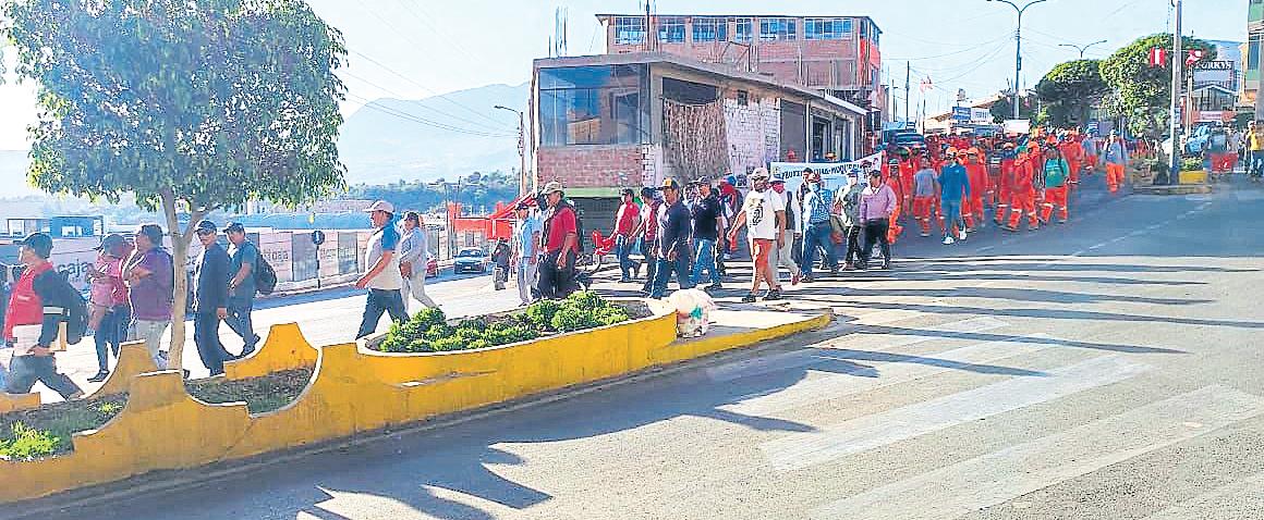 ras de la tarde recién realizaron una marcha los trabajadores afiliados al Sindicato de ConstrucciónCivil.
