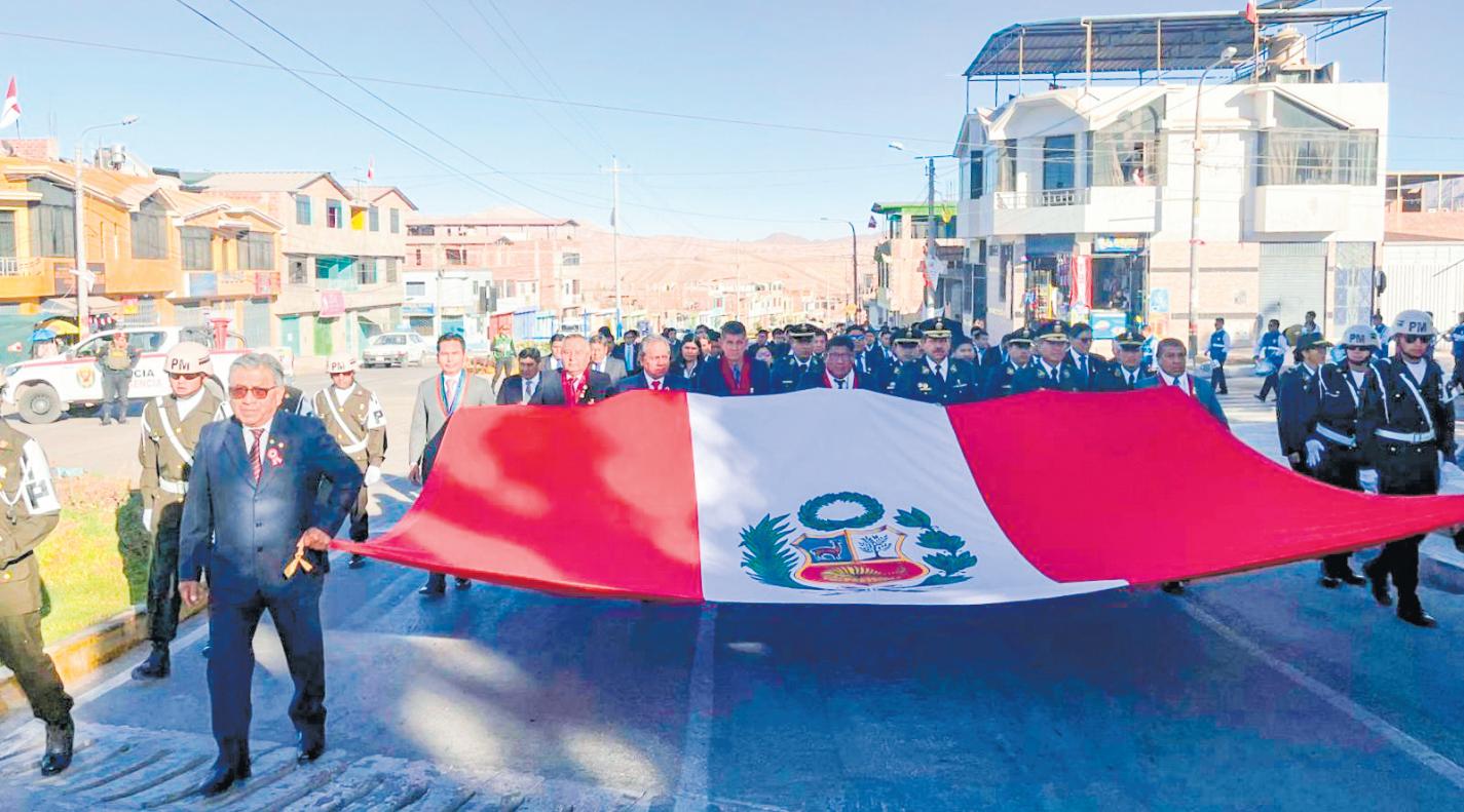 El acto cívico fue presidido por el alcalde distrital, Florentino Nina Fernández y estuvieron presentes los alcaldes de Ilo y Pacocha,subprefectos provincialydistrital,regidores, autoridades invitadas y poblaciónengeneral.