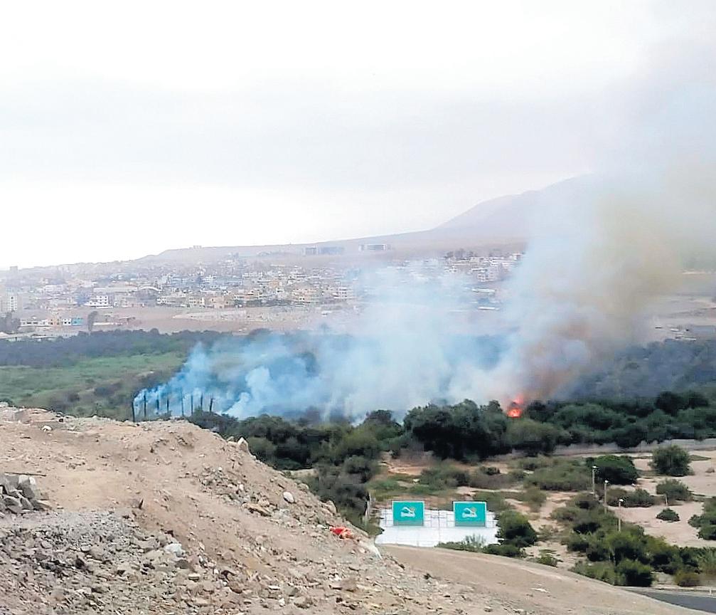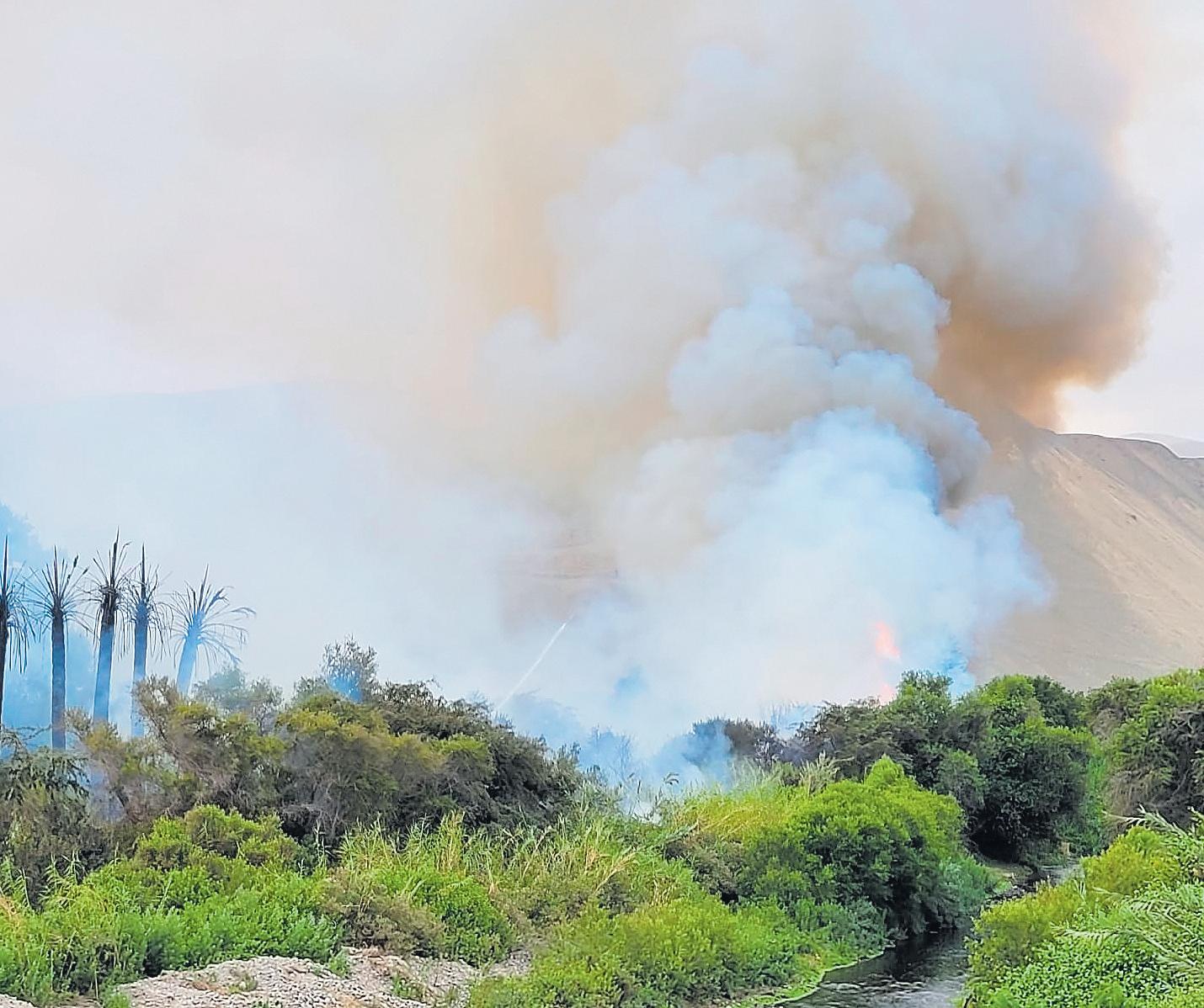 Un incendio forestal se registró el día de ayer viernes en el valle de Ilo, quemándose palmeras, árboles, arbustos de una chacra que está junto al ríoOsmorejurisdiccióndeldistritodePacocha.