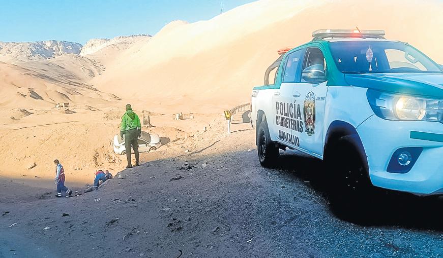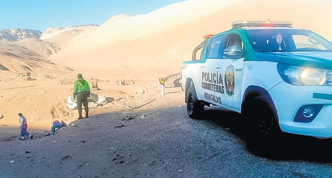 El vehículo que hacía la ruta Moquegua – Ilo se despistó y volcó aparatosamente, quedando a 10 metros fuera de la vía sobre sus 4 ruedas presentandodañosmaterialescomo parabrisas roto, micas rotas, ventana lado izquierdo delantera rota y parachoques abollados.