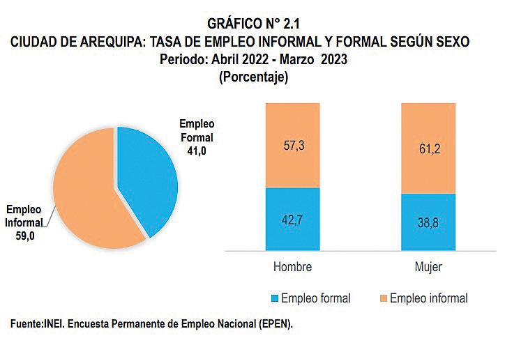 a las innumerables barreras burocráticas que impide que los ciudadanos puedan iniciar un pequeño o mediano negocio formal con rapidez y eficiencia. Hasta que el Estado no sea capaz de incentivar de maneraasertivalaformalidad de empresas, la informalidad estará vigente. Actualmente, el 59% de arequipeños está enesacondición.