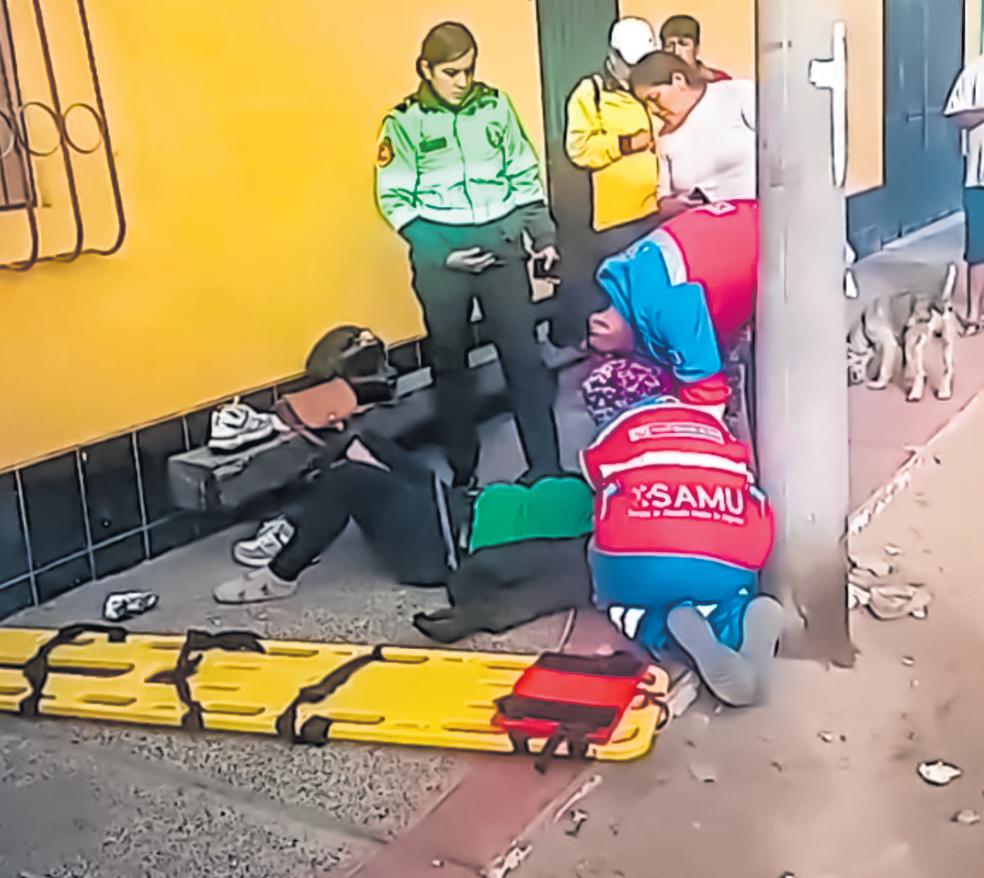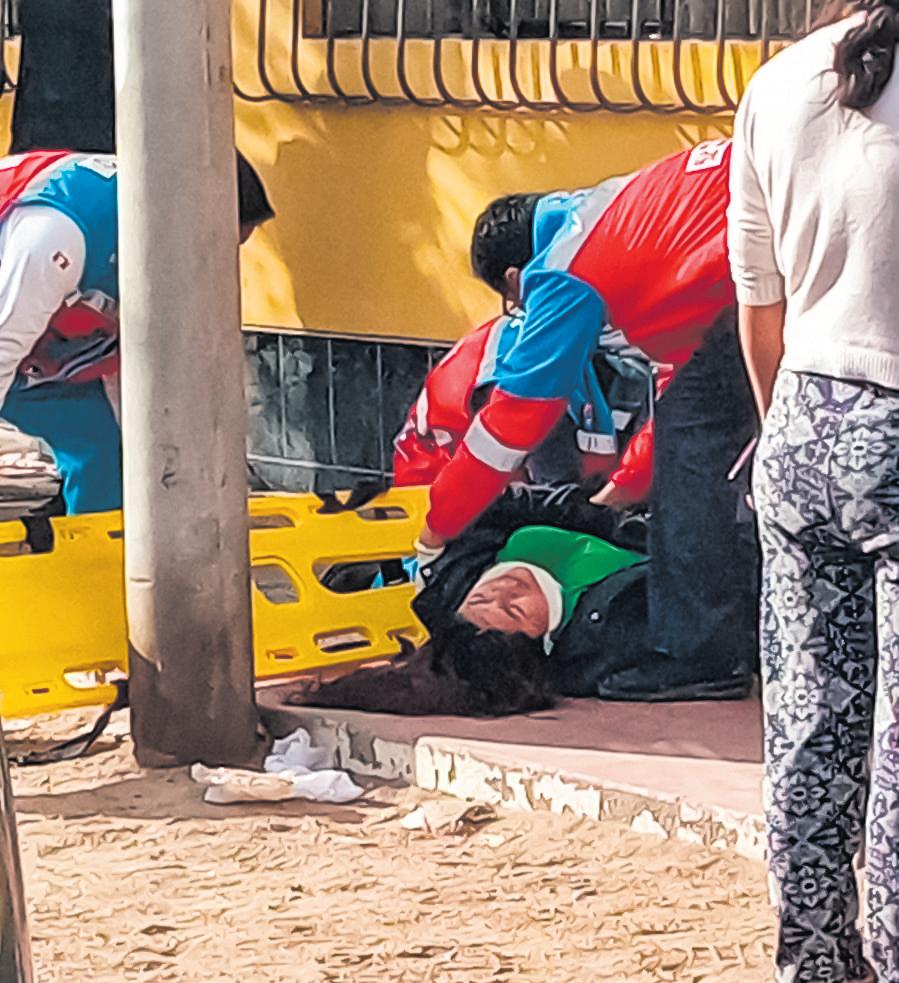 La mujer fue identificada como Carmen Chávez, quien labora en una entidad financiera,quienvestíaelpolodela entidad. Personal del SAMU brindó los primeros auxilios y luego la trasladó al hospital delMINSAdeIloparasuatención.