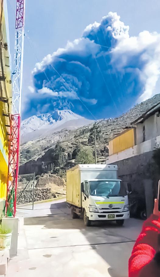 dealturasobrelacimadelvolcán. En un primer momento, las cenizas, influenciadas por losvientos,fuerontransportadas hacia los sectores oeste y noroeste del volcán, en dirección del distrito arequipeño de San Juan de Tarucani y sus respectivoscentrospoblados.