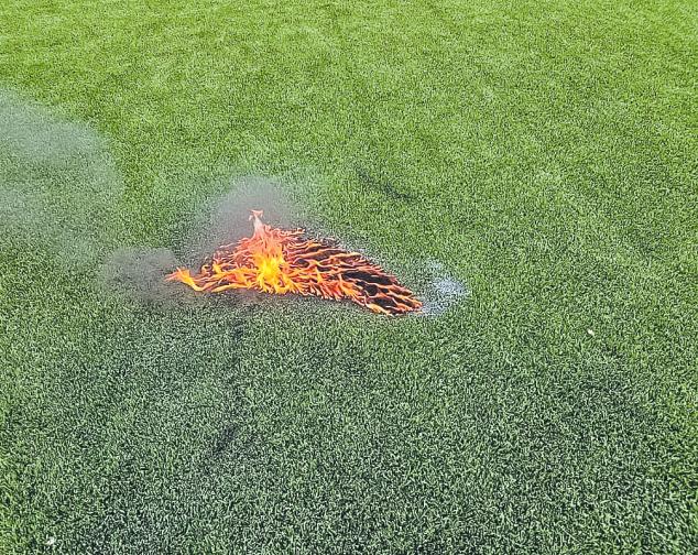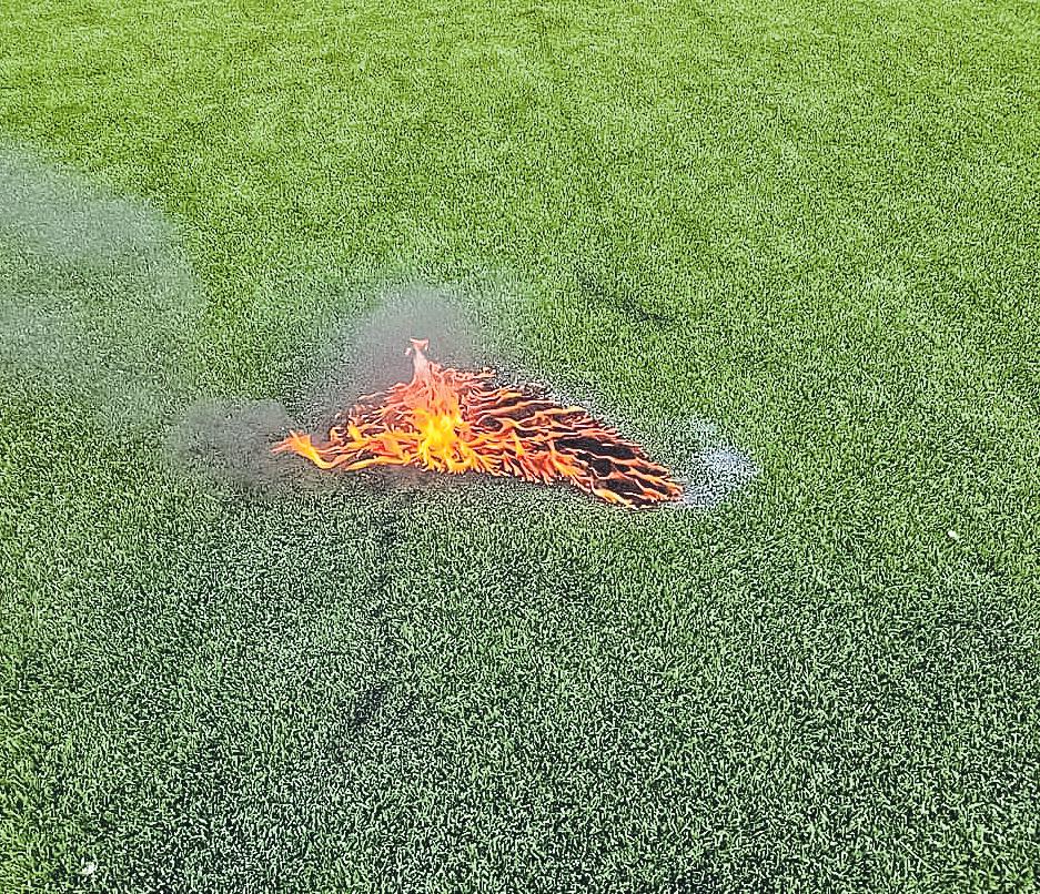 Sujeto lanzó bengala al césped artificialy prendió fuego ►CamporeciénestrenadoycertificadoporlaFIFA.